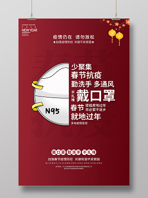 抗疫蓝白卡通戴口罩冬季疫情防护宣传海报展板