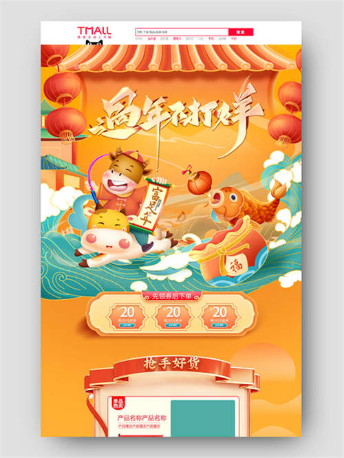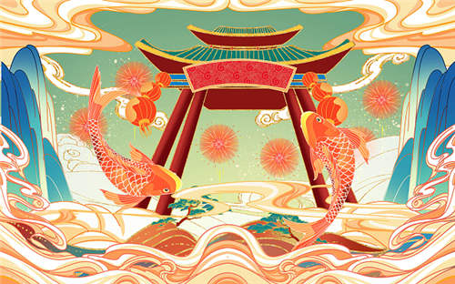 卡通手绘国潮风年货插画小年新年春节元旦
