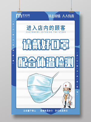 抗疫蓝白卡通戴口罩冬季疫情防护宣传海报展板